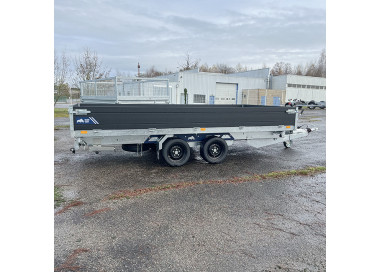 Remorque tribenne Saris K3 406 x 204 cm 3 essieux PTAC 3500 kg Heavy Duty Black Edition • Pompe électrique• Châssis entièrement soudé (profilé tube rect.)• Plus de 200 points de soudure par...