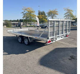 Porte voiture freiné roues extérieures avec becs de chargement fixes et basculement à gaz. Il est ici proposé en série avec un treuil 1600 kg auto-freiné et une poulie de renvoi. De nombreuses...